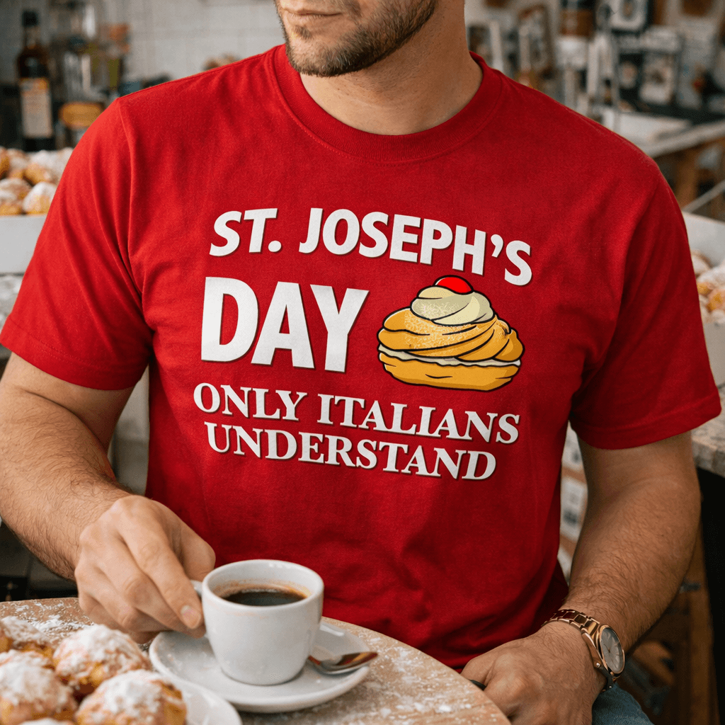 If you know, you know. St. Joseph’s Day isn’t just another holiday—it’s a feast, a tradition, and an excuse to indulge in the legendary zeppole. This tee is for the Italians who grew up with red clothes, family tables stacked with pastries, and a day dedicated to celebrating heritage the right way.