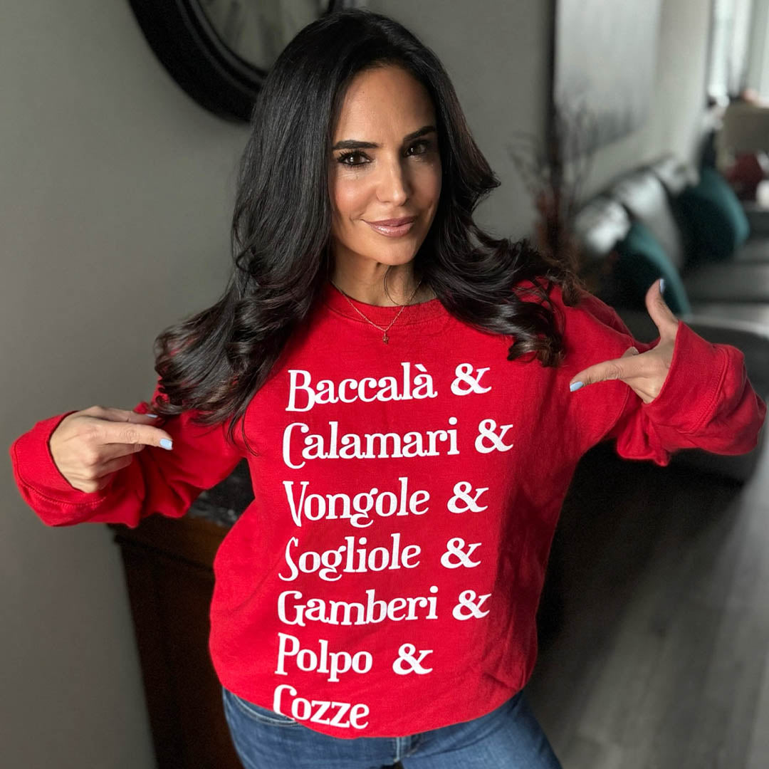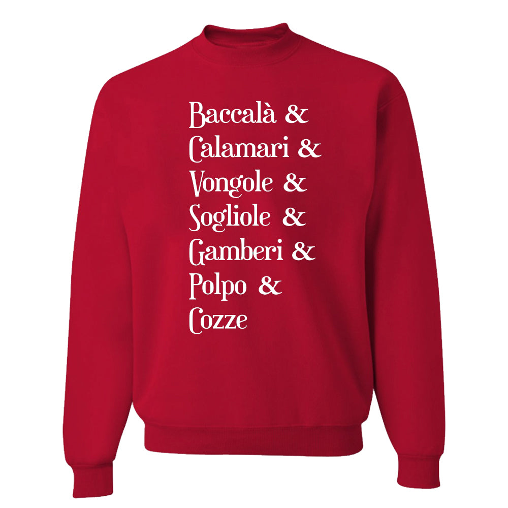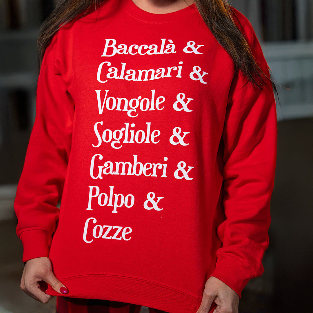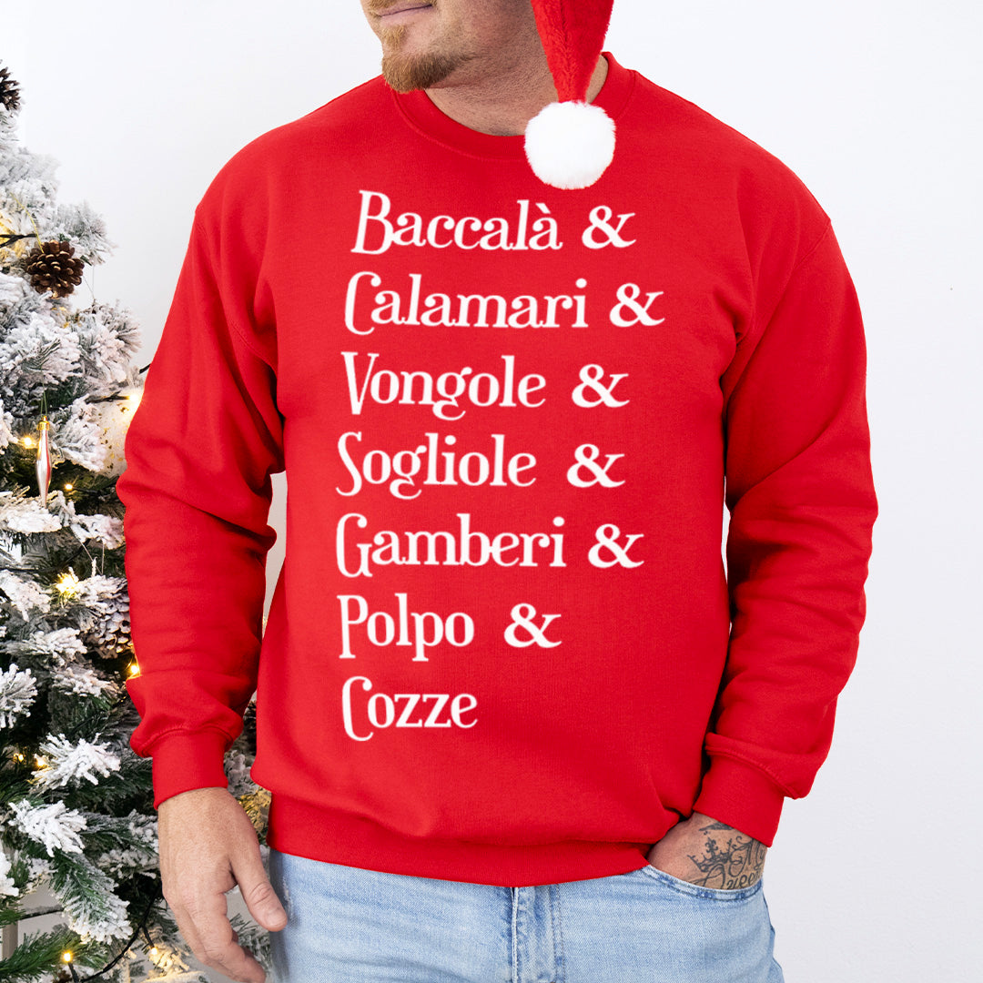Celebrate Italian holiday traditions in style with the Feast of the 7 Fishes Crewneck. Featuring a playful list of classic seafood dishes like Baccalà, Calamari, and Vongole, this cozy sweatshirt is perfect for anyone who loves the magic of Christmas Eve dinner. Made from soft, warm fabric, it’s ideal for gathering with family or keeping the tradition alive wherever you are.