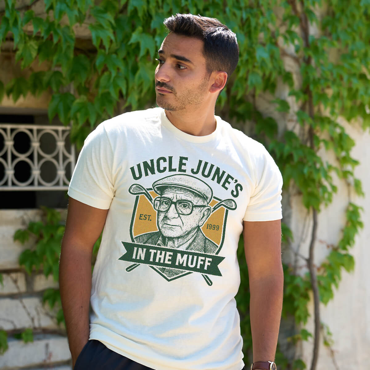 A tribute to one of TV’s most unforgettable uncles, this unisex-fit tee brings classic Italian-American wit to life. Whether you’re on the golf course or just breaking chops with family, it captures the old-school spirit and sharp humor we all grew up with. An instant classic for anyone who knows the real meaning behind “in the muff.”